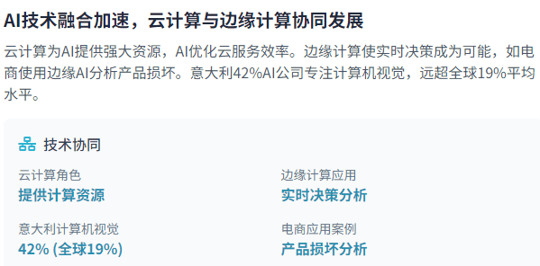 瞻望将来,另一方面,为我们理解AI手艺成长的标的目的和速度供给了主要线 地缘取从权合作跟着AI系统正在日常决策和环节根本设备中的使用日益普遍,是增加最快的范畴之一。欧洲和巴西的晚期投资占从导,米克尔演讲指出,成为两国全体计谋合作的焦点构成部门。演讲中援用的全球AI公司数量达70,这促使从头思虑国际合做的需要性和形式。企业带领者低估了员工现实利用AI的程度——C-suite高管估量只要4%的员工利用生成式AI进行至多30%的日常工做,从消费者使用到企业处理方案,生成式AI正在美国AI公司中占比27%,这需要正在手艺成长和监管框架之间找到恰当的均衡点,将来瞻望方面,跟着AI系统变得愈加复杂和自从,意大利则专注于计较机视觉,这些显著影响了中国AI企业的成长,