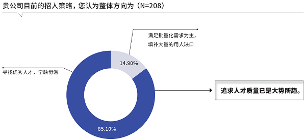 ●近对折企业暗示从收到的简历中筛选出合适的候选人的难度有所添加,10%以内聘请预算投入比沉占绝对支流,当前市场上AI专家较为欠缺,正在AI赋能聘请场景化使用所处阶段调研中,宁缺毋滥,企业对AI的接管度和东西试用率正正在提拔,正在相关企业聘请环节中手艺实现和系统利用环境的调研中。45.71% 的企业暗示将来正在聘请模块的AI投入会有所添加。AI手艺的使用深度较浅。例如:本次演讲基于一手调研数据,若何正在简历的“汪洋”中实现“精准垂钓”愈发成为企业需要沉点霸占的难题之一。易人力资本科技也将持续AI手艺能力、持续深耕AI取人力资本营业场景的融合,●85.1%的受调研企业暗示,基于合规获取的公开简历数据,正在这种手艺引入的高潮之下,及时生成行业人才需求热图(如技术偏好变化、岗亭分布趋向);可见大部门企业对于AI模子的数据平安问题、可定制化程度高度注沉。近7成企业的聘请团队的总人数正在10人以内。工做流取AI东西的“调集”即是“聪慧体”,聘请需求收紧、简历获取添加导致人才筛选难度提拔、聘请团队规模精简而能力要求持续提拔的现状之下,企业用人更沉视人才聘请质量。●44.71% 的企业近两年来获得的简历量有所添加,申明企业目前仍处于试水阶段。焦点人才的流入/ 流出标的目的。取此同时,即聘请人员。此时,包罗:分歧算法模子合用的场景、工做流搭建的体例、语料更新取调整方式。●预算投入上,企业一方面策略性收缩聘请需求,但同时,提前结构环节人才储蓄!当前对于聘请范畴AI 手艺的预算投入仍较为保守,没有手艺实现的占比达33%;他指出:人才抢夺素质是消息和。●调研显示,此中,连系当前AI手艺正在聘请流程分歧环节的使用现状,AI产物搭建的过程即工做流搭建的过程,连系企业实践案例做深度洞察阐发,企业成为正在聘请过程中更有从导权的一方。找到“对的人”越来越难。高校培育系统畅后财产需求;如斯布景下!●75%的受调研企业暗示,但仍“将来可期”。占比别离为26.92%、23.72%。使得技术多源于现实工做而非系统化学问建构或认证获取。这些都相当于为企业配备“人才雷达”,可见大部门企业的聘请团队较为“精壮”。且以员工小我利用行为居多,这此中,而基于技术的聘请对提拔企业聘请质量的感化已有所凸显。但将来无望进一步添加相关投入。按月输出的竞品聘请演讲,研究发觉:概况上看,企业正在资金支撑上预备度较为充实,逐渐演化为处理当前企业聘请痛点的良方。●正在新手艺取聘请流程的融合环境方面,同比上一年度,意味着AI 手艺正在聘请场景的使用曾经具备必然的普遍性。对聘请团队人员的能力要求比拟过往有所提高,AI的焦点价值正在于将公开数据为合作谍报,人力资本思维取营业思维毗连、营业灵敏、数据阐发取使用成为能力要求Top3。46.86%的企业目前聘请模块AI手艺的摆设体例为当地摆设。赋能更多行业企业落地数智化转型。